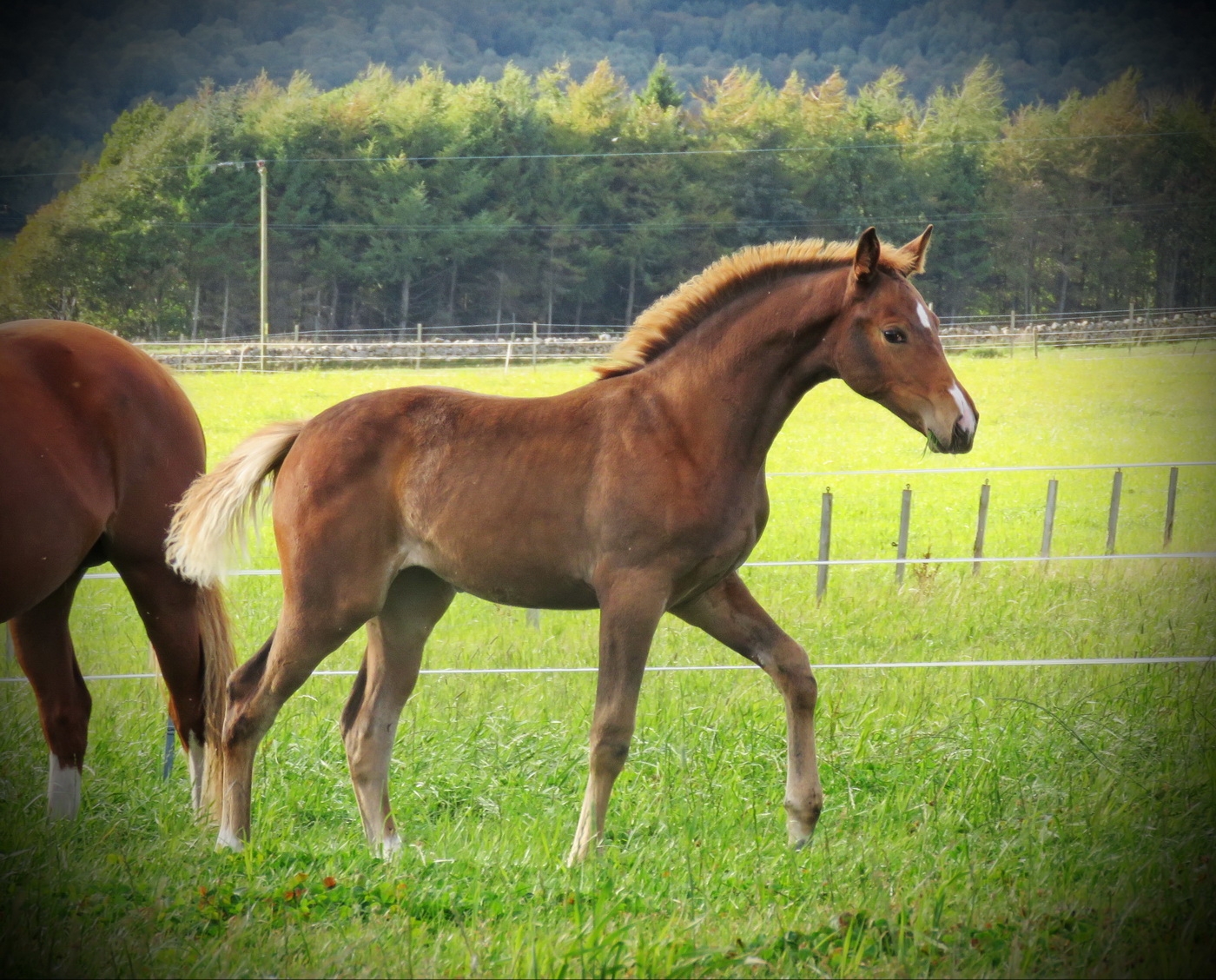 Nebular Horizon carries 1x copy of the Silver Dilute gene which gives her this stunning, very rare colour. This young girl born 2018 is full of character, and has a sweet, gentle nature. Out of a Scottish Sports Horse mare, by the famous silver dilute KWPN stallion Horizon (AES Licensed), she is strong in the body with light correct movement; a riding horse type with potential to succeed in any of the 3 main disciplines and should mature approx 16hh. Handled since birth, she is halter trained, rugged if required, loads/travels in our horsebox and stands for hoof trims with the farrier. She is well socialised with other foals/horses of all ages, is a good doer and winters outside. Passported with the AES (Anglo European Studbook), microchipped and vaccinated against flu and tetanus.