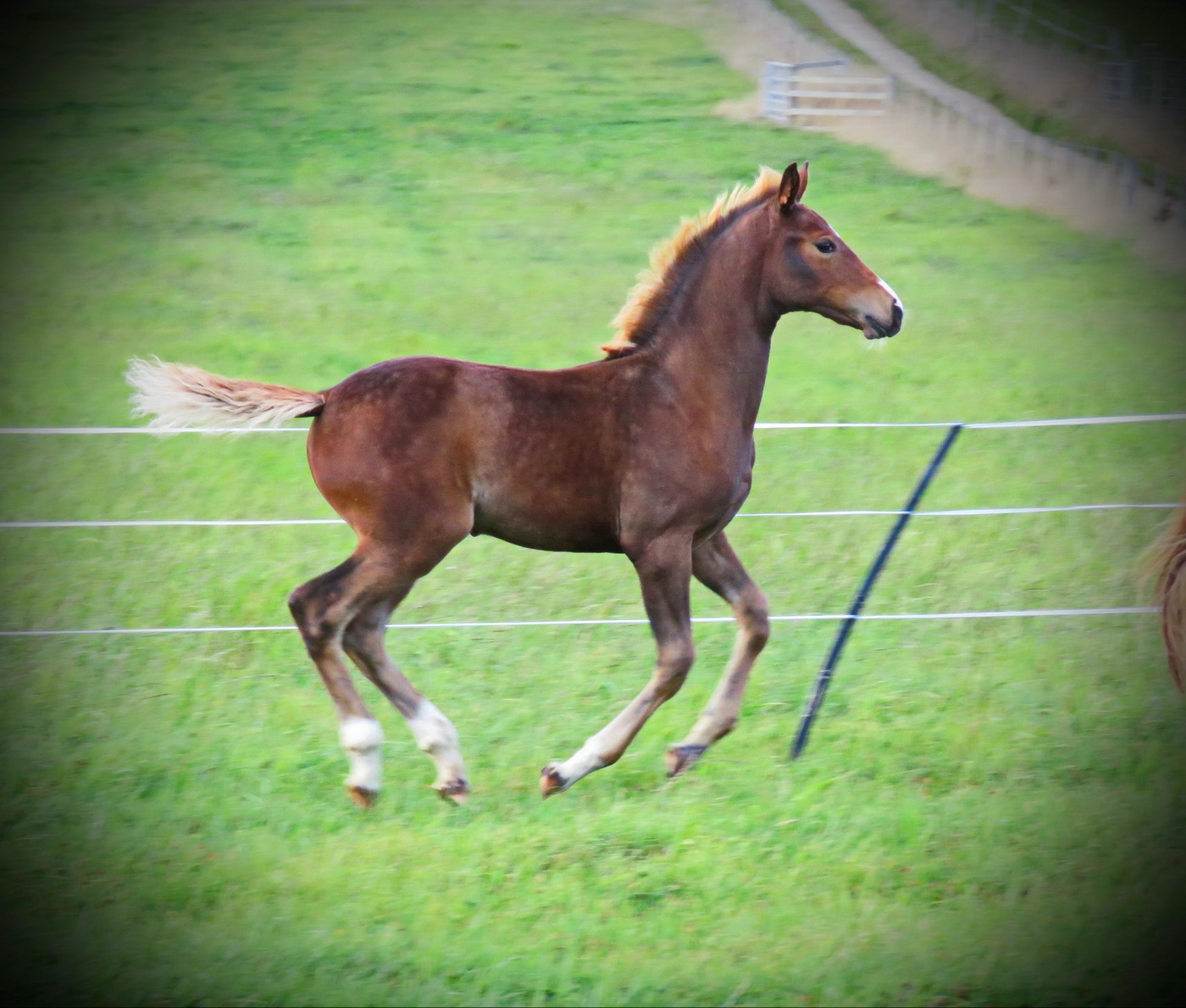 Her dam our homebred mare Vibrant Gold has already produced several great youngsters for us who have been sold to competitive homes. Her sire Free Spirits Gold’s comes from family of riding horses who have competed and won at local & regional showing, dressage, show jumping and cross country – sane enough to do everyday riding activities, yet talented enough to win, he himself is a prolific riding club dressage winner and proven popular at shows for his consistent wins and excellent behaviour. His sire Livius was a Grade A showjumper and son of the great jumping stallion Secundus, Grade A and five times British Showjumping Sire of the year based on his progeny’s winnings. His damsire Invincible B (by VDL Wellington) was also a successful Grade A jumper. – VDL Wellington competed at Advanced level dressage and was also a winner in International Showjumping, a son of “sire of the century” Nimmerdor, who has no less than 40 approved stallions including Goodtimes, Heartbreaker Aram Amethist to name but a few.